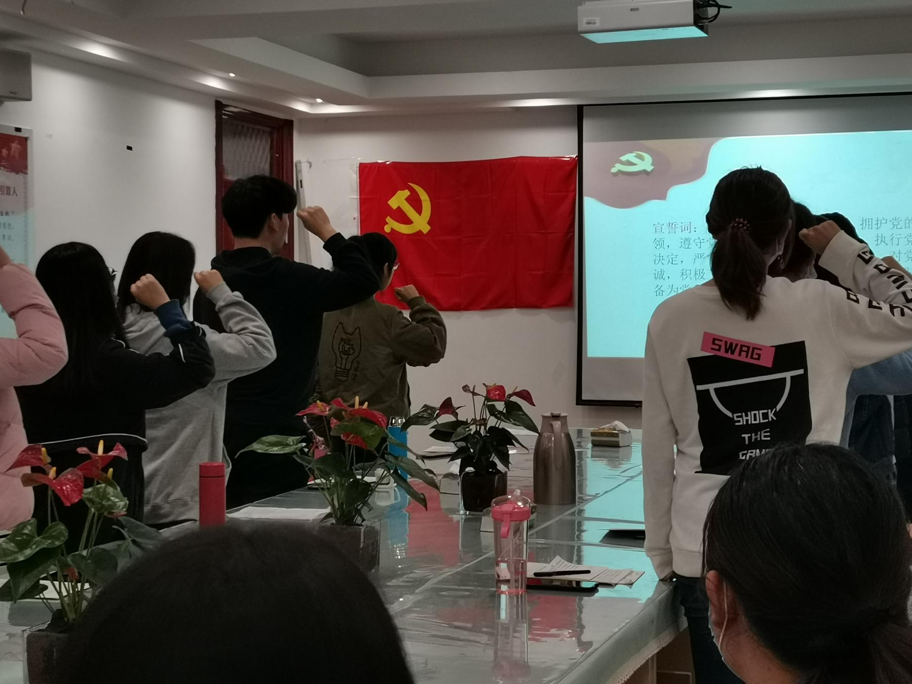 宣读结束后,相应的入党介绍人、其他与会党员进行讨论并对发展对象是否符合发展条件发表意见。之后由参会的正式党员进行无记名投票表决,经过投票,15名发展对象一致通过。随后,积极分子进行入党宣誓,奏唱国际歌,在庄重而热烈的氛围中会议圆满结束。