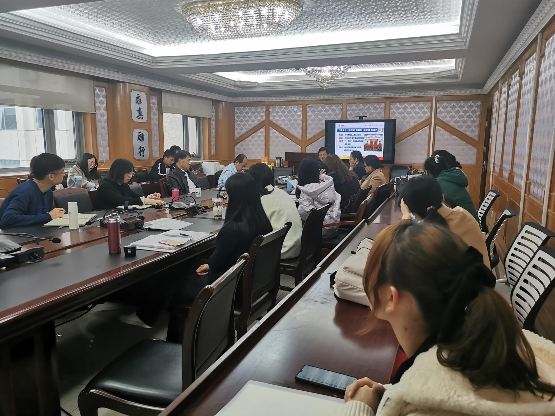 楼212会议室开展中国共产党十九届五中全会精神专题理论学习,活动邀请了校党委常委、宣传部部长、教师工作部部长孙杰为主讲,并进行了宣传工作交流座谈会。十大赌·博网址大全