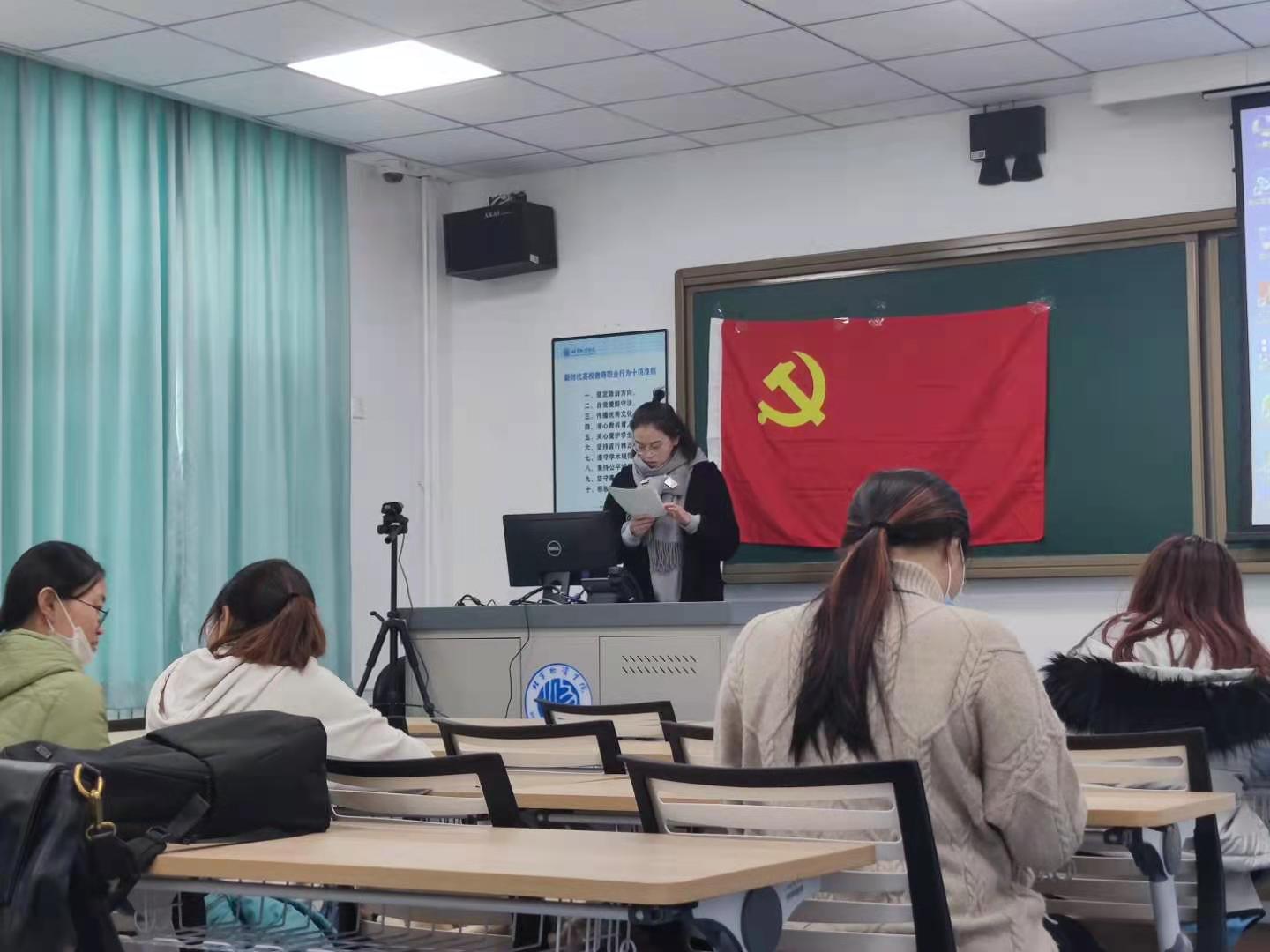 学硕研究生党支部于主教107召开了2020年秋季学期预备党员转正大会。会议讨论关于张云、张霞、宋蓉、郝丹阳、郭保云、刘洋6名同志申请转为正式党员的问题。本次转正会议由支部书记王洋老师主持,支部正式党员、预备党员参加,贺玉英老师作为组织员列席预备党员转正大会。