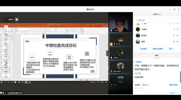 会上,各组代表学生依次进入会场做了立项汇报,对项目的核心内容和随后的计划安排进行了简要陈述。每次陈述之后,评委老师会对该项目小组的核心内容和安排计划进行提问和指导。代表学生认真进行答复,并详细记录了指导老师的宝贵意见。本次答辩针对40个项目进行,其中有“你好·大学 APP”、“麓安智能头盔”等创业项目, “探索后疫情时代公益与医务人员服务的融合路径和政策建议”、“我国上市公司关键审计事项问题研究(以中兴通讯公司为例)“等创新项目,“大数据背景下高校本科会计人才培养与社会需求差异研究”等实培计划。