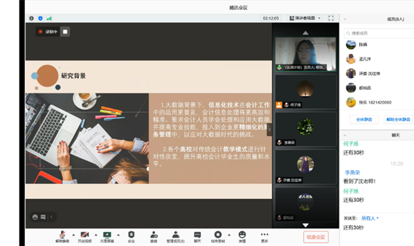 于2021年1月9日上午8点在腾讯会议上组织了2020-2021大学生创新创业实培项目立项答辩会,共40个项目分AB组进行了立项答辩,李燕荣、殷裕品、祝映莲、董丽萍、曹键、沈佳坤六位老师作为评委老师对各项目小组进行了提问和指导,李巧老师精心准备和组织了整场答辩。