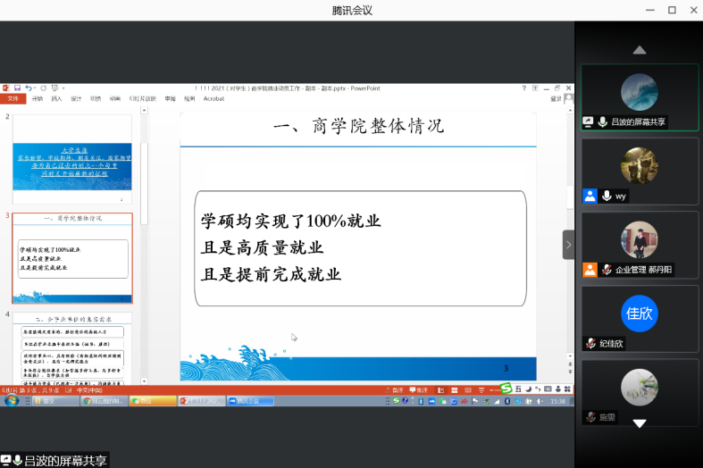 举办了2021届研究生毕业工作促进会,会议以腾讯会议的形式展开,学院院长吕波、辅导员王洋和全体2021届研究生毕业生参加了会议。
