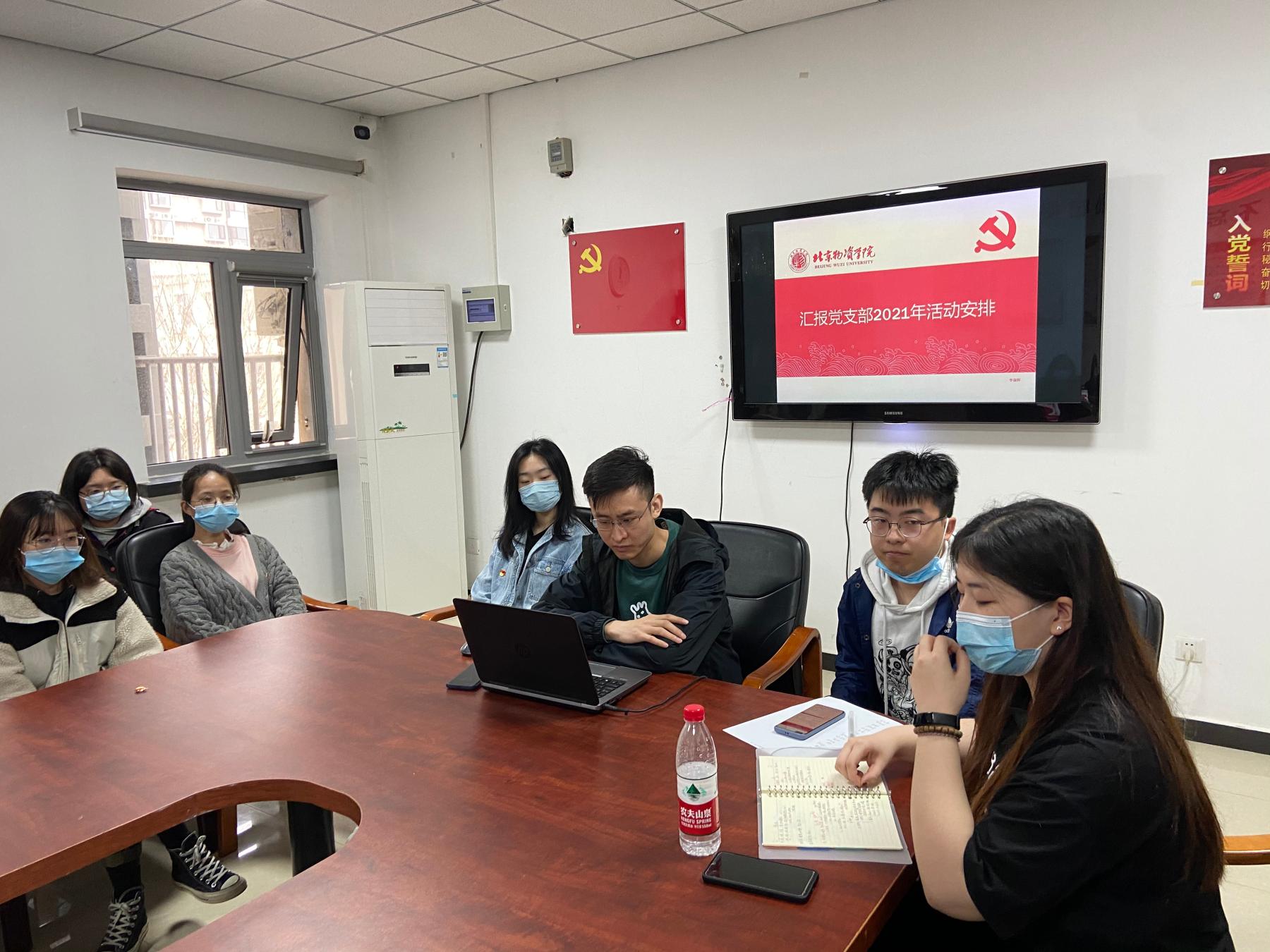 随后进入到由李淑婷同学负责的汇报党支部2021年活动安排。详细介绍了关于党史竞答比赛、实践活动以及相关的时间安排。