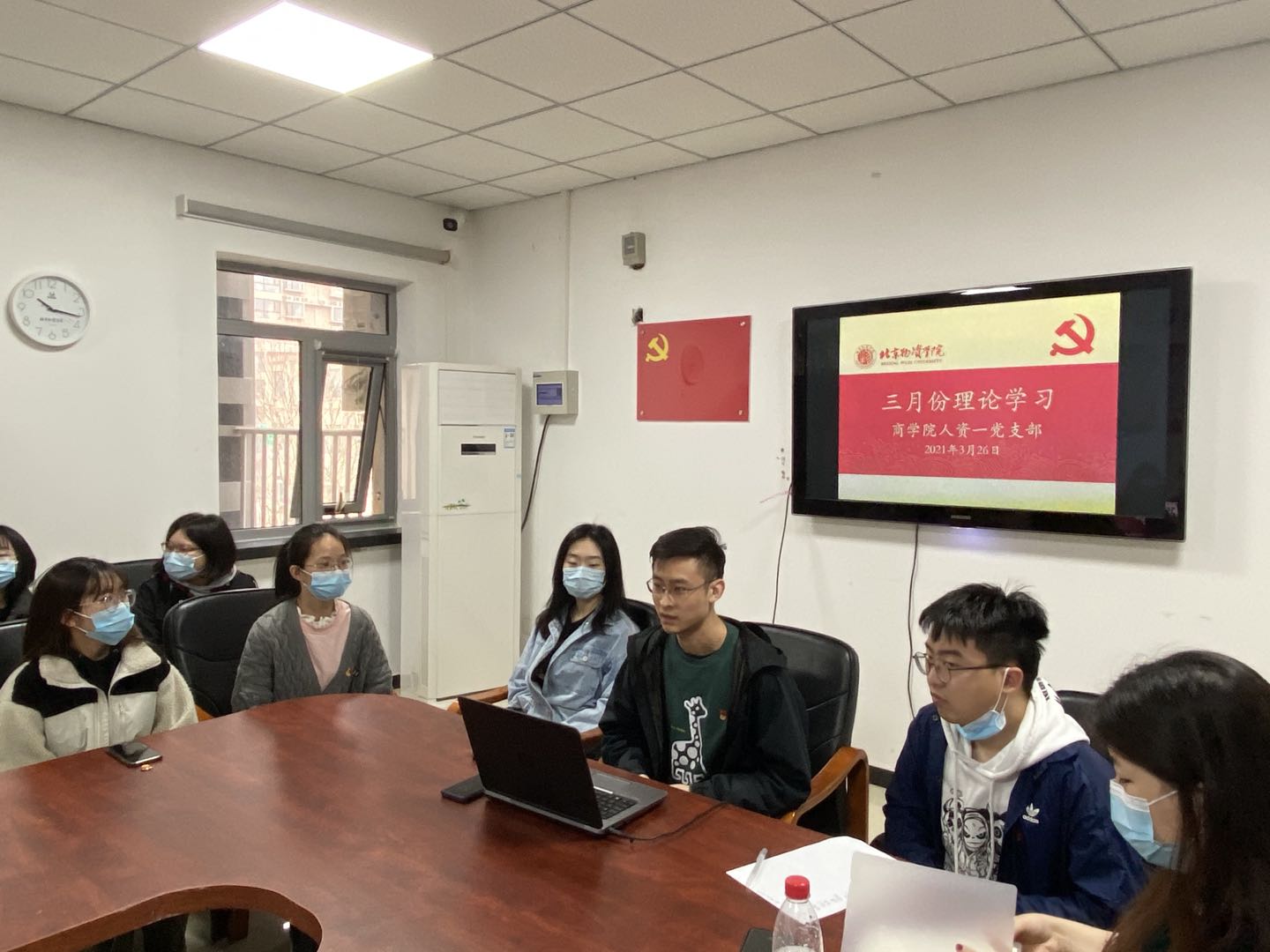 人力资源管理学生第一党支部在科研楼212召开了3月的理论学习会。本次座谈会由人资学生第一党支部书记董海辰老师主持,学生第一党支部全员参与。
