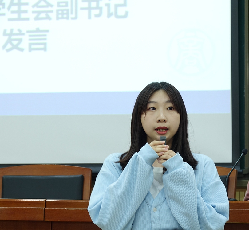 学生会主席张廷钰发言。他结合自身的体验,向大家分享了在学生会的经验。希望同学们能够在学生会生活和工作的过程中,找到自己的价值,突破自我。