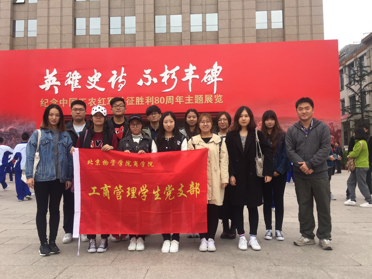 工商管理学生党支部成员在支部书记凌林老师的带领下来到中国人民革命军事博物馆,参观“英雄史诗不朽丰碑——纪念中国工农红军长征胜利80周年”主题展览,一同前往参观的还有部分天赐良缘社区的空巢老人。