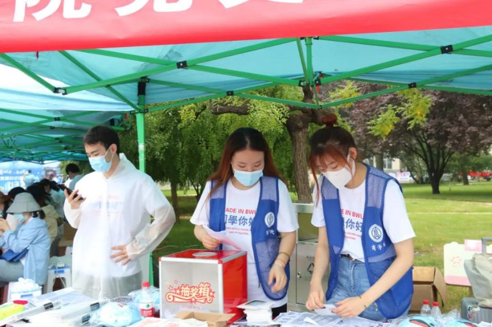 志愿者们宿舍楼下的耐心等待,篮球场楼梯口的上下搬运,校门口和宿舍的来回往返,始终带着亲切的微笑,认真负责地为新生引路。为了缓解搬运行李带来的疲惫,我们还特意准备了党史问答活动,并且为新生送上一份入校小礼品。
