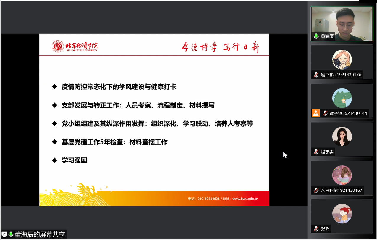 人力资源管理学生第一党支部在腾讯会议线上召开了三月的理论学习会。本次座谈会由人资学生第一党支部书记董海辰老师主持,学生第一党支部全员参与。