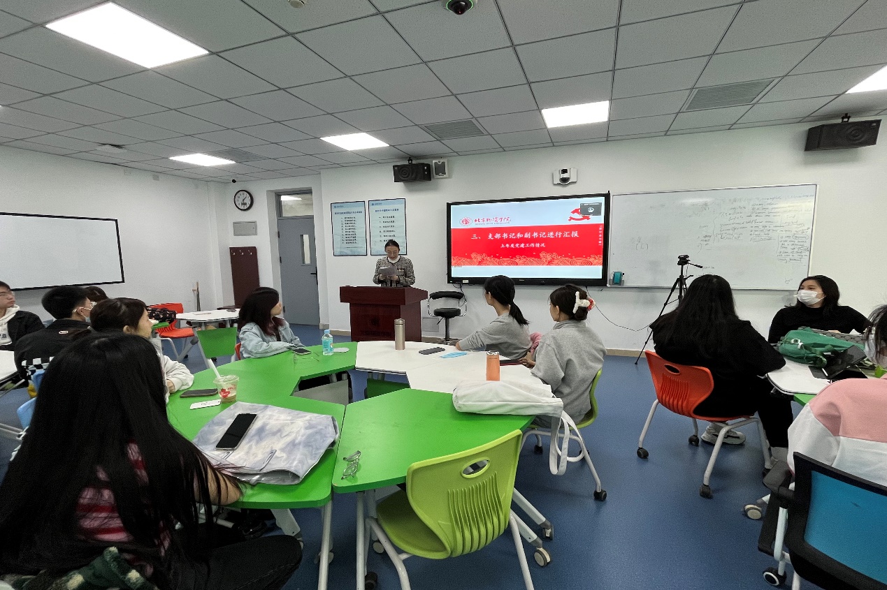 杨柳依依同志在大会上汇报了工商管理专业学生第二党支部的基本情况、2022年度党支部工作责任清单的完成情况以及存在的主要问题和下一步所要采取的改进措施。杨柳依依同志希望全体党员要共同对照落实党中央和上级党组织部署要求,对照履行党章规定的职责任务,要从实际出发,全面剖析个人在政治、思想、生活和学习等方面存在的现实问题,并制定科学合理的改进措施。