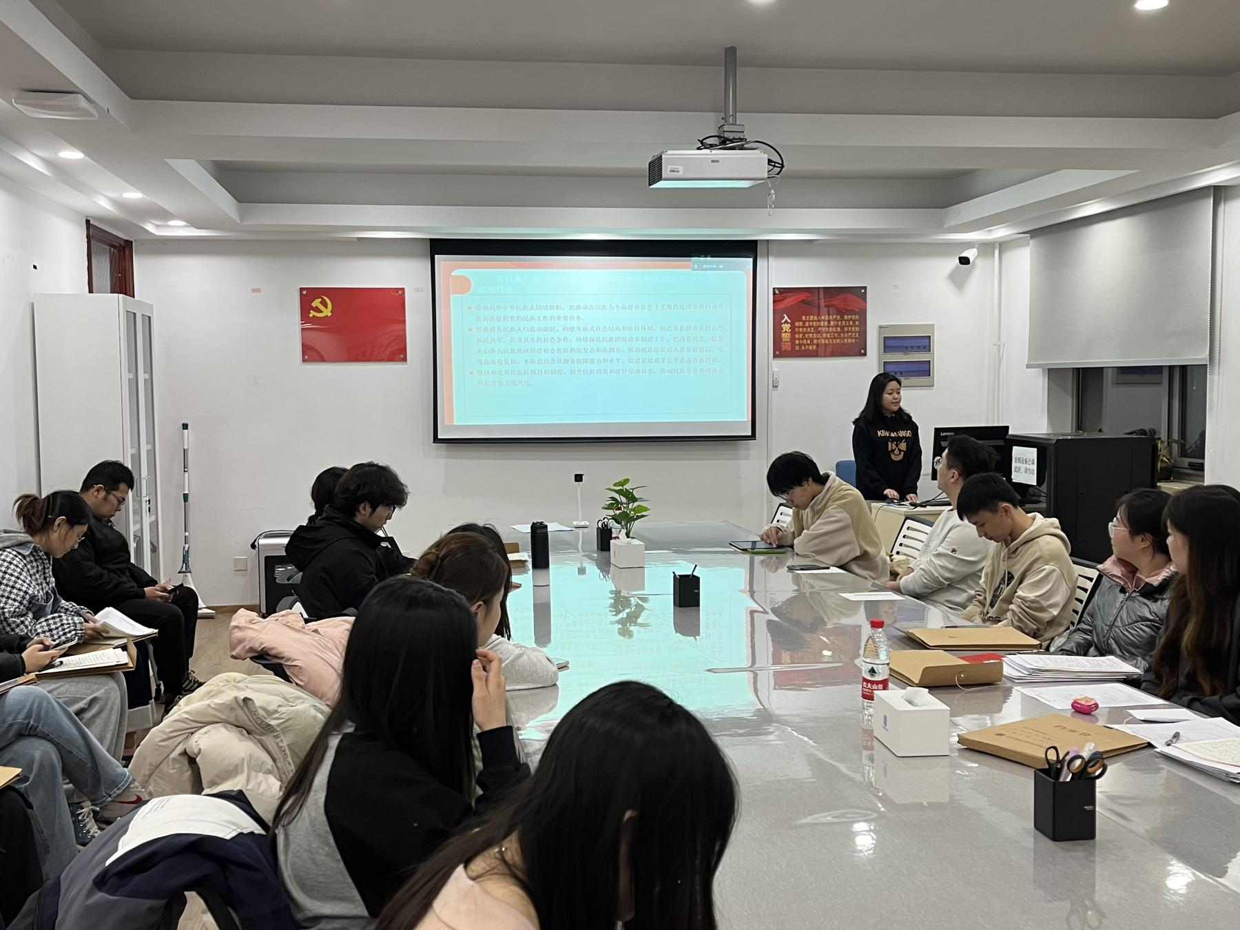 2023年11月20日19:00,党支部组织全体党员在科研楼410召开理论学习会。此次会议由人力资源管理专业学生第一党支部书记董海辰同志主持。本次理论学习会主要围绕深入学习习近平在中共中央政治局第九次集体学习时的重要讲话精神及相关内容。