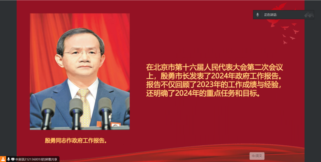 活动的最后,申奥琪同志带领大家回顾了北京2024年政府工作报告。